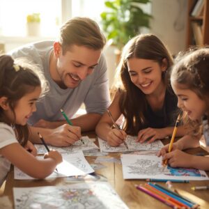 Kids and adults enjoying creative coloring moments together