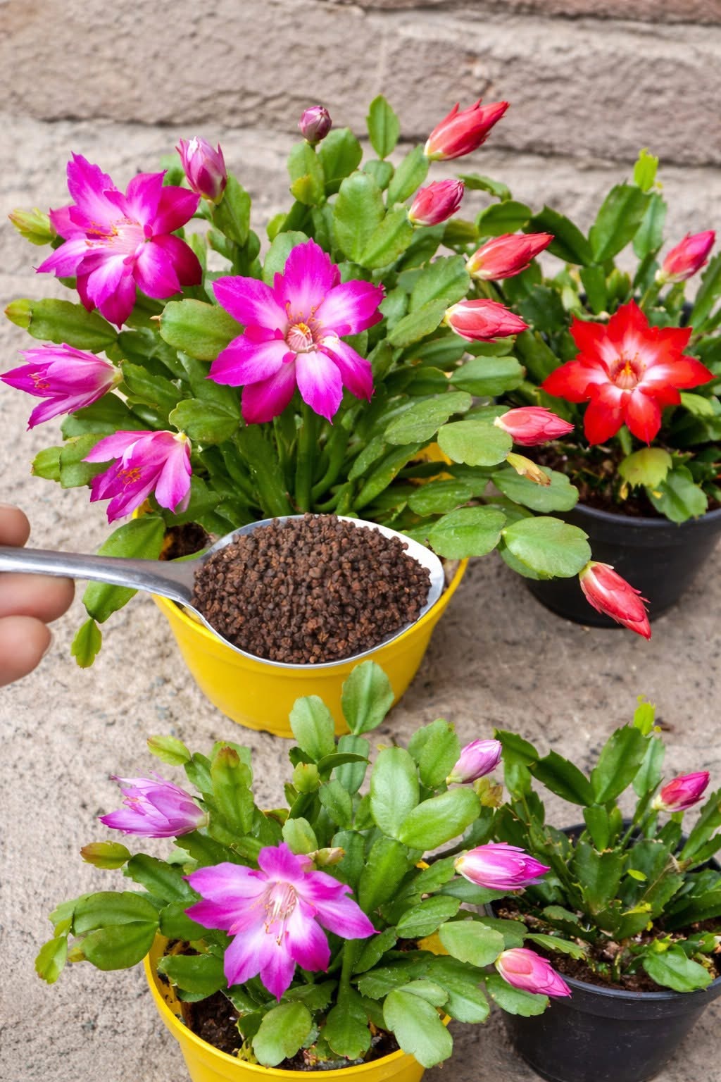 Coffee grounds enhance its growth by providing acidity and nutrients, which support healthy foliage and bloom.