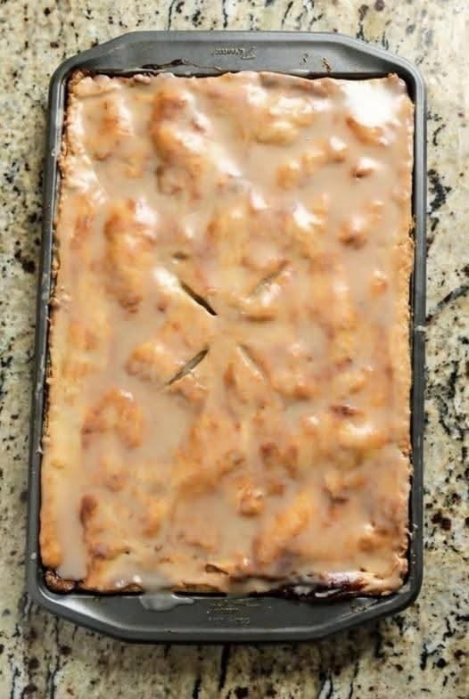 Apple cakes have been popular for centuries, especially in European and American home baking traditions. Apples were widely available and inexpensive, making them a common ingredient in desserts. Slab cakes became popular because they were easy to bake in large pans and could serve many people at gatherings and celebrations.