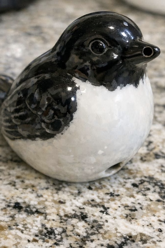 As you rummage through a box of old kitchen utensils, you stumble upon a peculiar find: a hollow ceramic bird with a hole in its beak and another at the bottom. It seems out of place among the usual pots, pans, and spatulas. What could it possibly be used for?
