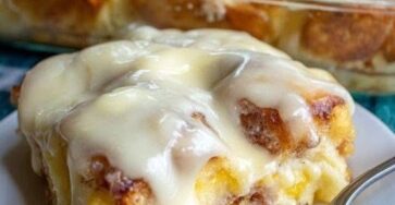 Ingredients For the casserole4 cans refrigerated cinnamon rolls with icing (cut into quarters)4 large eggs1 cup whole milk1 cup heavy…