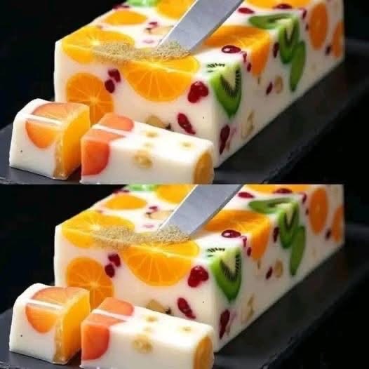Creamy Fruit Jelly Terrine (Fruit Mosaic Dessert)
