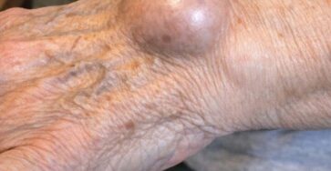 My grandmother developed this strange lump on her wrist overnight. What could this be? I am worried because it looks…