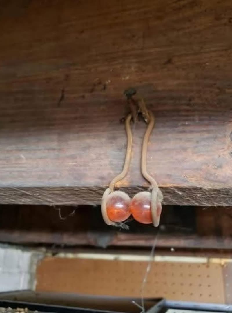 That’s exactly what happened when I noticed a strange object dangling from the wooden rafters of my century-old home. Suspended by aged cords were two glass marbles, paired together and wrapped in what looked like old fabric or twine. They weren’t random debris. They were placed with intention.