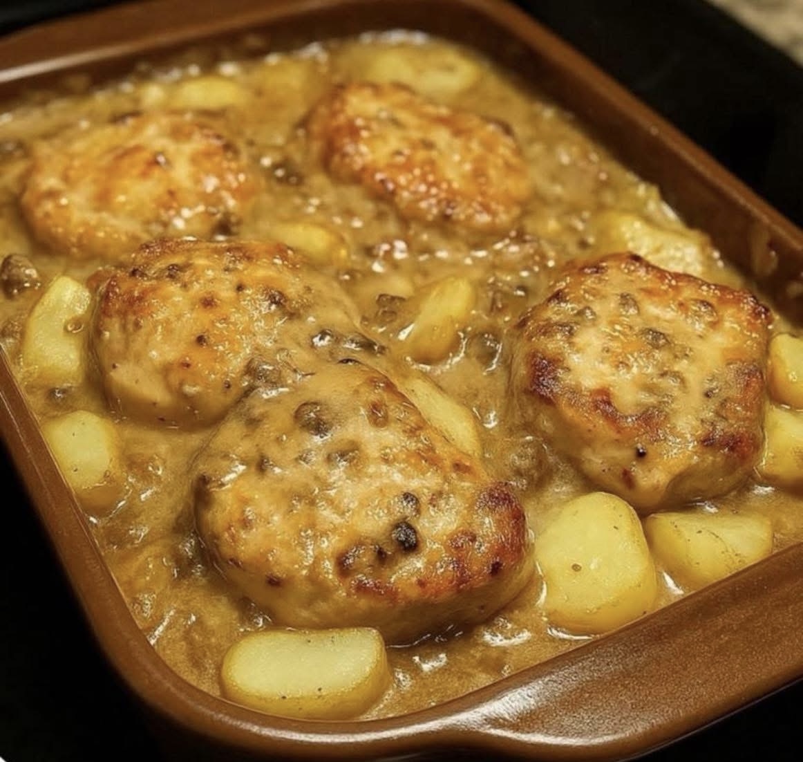 Pork Chop Supreme is a timeless comfort-food casserole that combines tender pork chops, thinly sliced potatoes, and a creamy onion-mushroom sauce. Everything bakes together in one dish, allowing the flavors to melt into each other while the potatoes become soft and flavorful. It’s simple, budget-friendly, and always a crowd-pleaser.