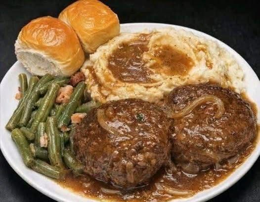 Serve hot with mashed potatoes, green beans, and bread rolls for a complete comfort meal.