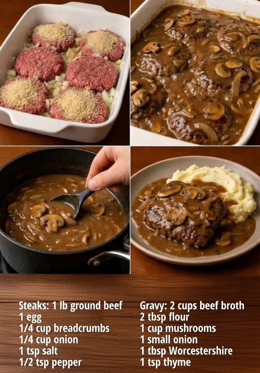 Tender, juicy beef patties simmered in a deeply flavorful onion gravy. This timeless dish is cozy, satisfying, and perfect with mashed potatoes or rice.